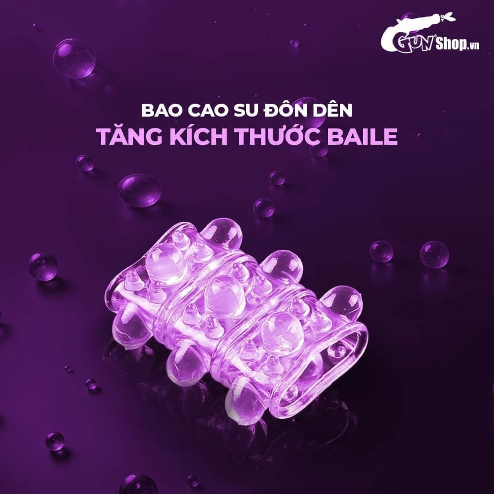 Bao cao su đôn dên khúc Baile là giải pháp tuyệt vời dành cho những quý ông muốn cải thiện kích thước "cậu nhỏ" cũng như kéo dài cuộc yêu. Sản phẩm giúp tăng khoái cảm không chỉ cho nam giới mà còn mang đến sự thăng hoa cho đối phương. Với thiết kế thông minh, bao cao su Baile giúp nam giới lấy lại sự tự tin trong phòng ngủ một cách nhanh chóng và an toàn.