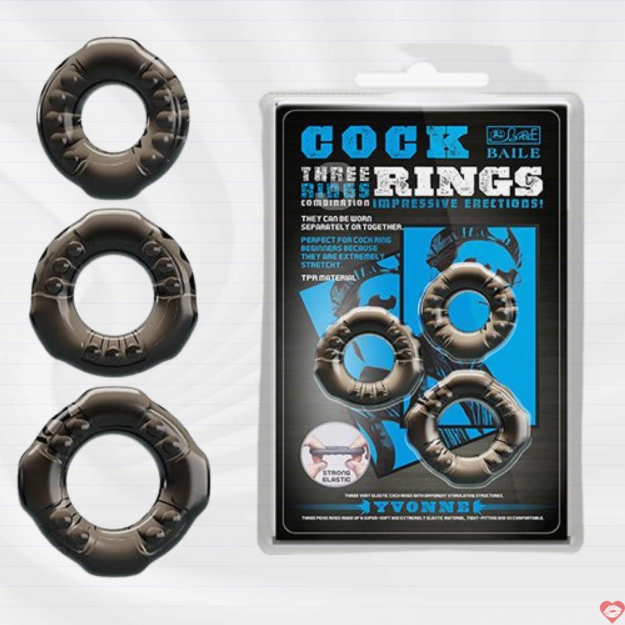 Bộ 3 vòng đeo dương vật chống xuất tinh sớm Baile Yvonne khách hàng được làm từ chất liệu TPR mềm dẻo thương hiệu , co giãn tốt giúp ôm trọn lấy cậu nhỏ khi dùng.