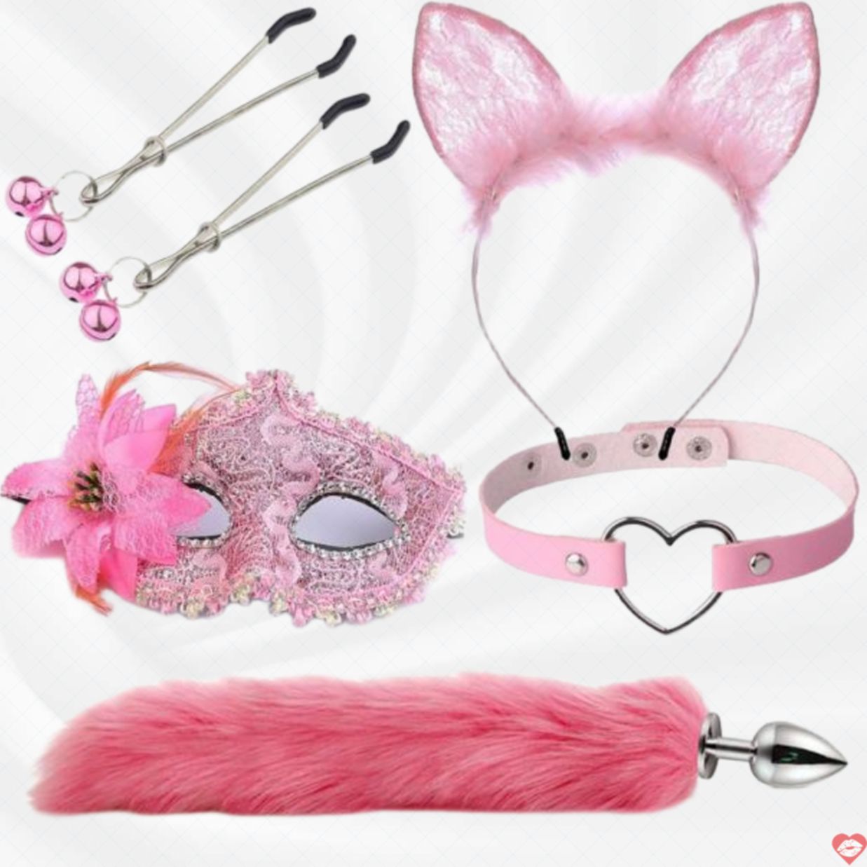 Bộ sản phẩm bao gồm nhiều phụ kiện thú vị như tai, mặt nạ, kẹp tai, đuôi size S, và bịt miệng, tất cả đều được làm từ chất liệu cao cấp, mềm mại, an toàn cho làn da nhạy cảm. Các món đồ có màu sắc tươi sáng như hồng, đỏ, đen, tím, dễ dàng phối hợp để tạo ra diện mạo mới lạ mỗi lần chơi. Kích thước nhỏ gọn, dễ đeo, phù hợp cho mọi đối tượng muốn trải nghiệm cảm giác kỳ thú trong chuyện yêu.
