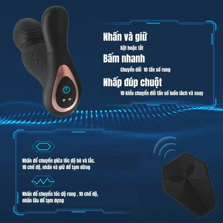Máy sở hữu 10 chế độ rung xoay và ngoáy khác nhau, giúp bạn thỏa sức lựa chọn và thay đổi theo từng khoảnh khắc. Chức năng xoay vòng bi lên xuống kích thích vòng hậu môn cực ổn, đảm bảo mang đến cảm giác mới mẻ, sảng khoái mềm mại và sâu sắc. Ngoài ra, khả năng ngoáy ngón tay kích thích điểm G chuyên biệt giúp kích thích tuyến tiền liệt cực kỳ chính xác.
